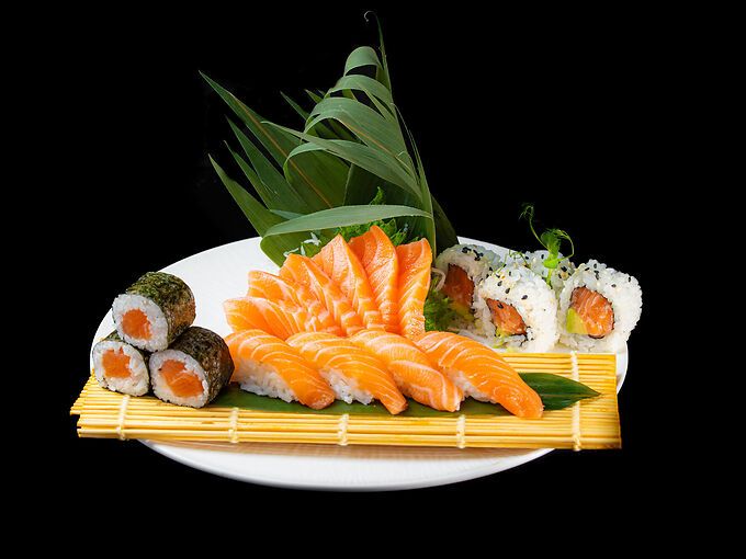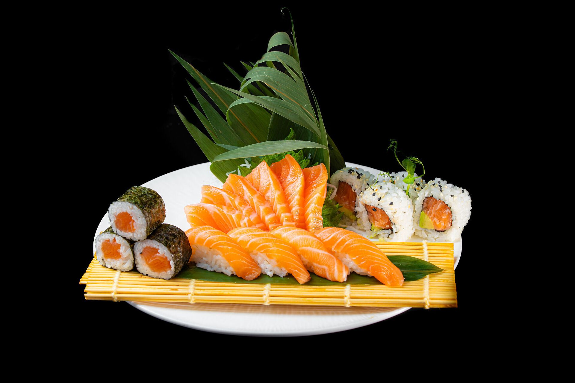Salmone: 6 sashimi; 4 nigiri; 3 hosomaki; 4 uramaki.